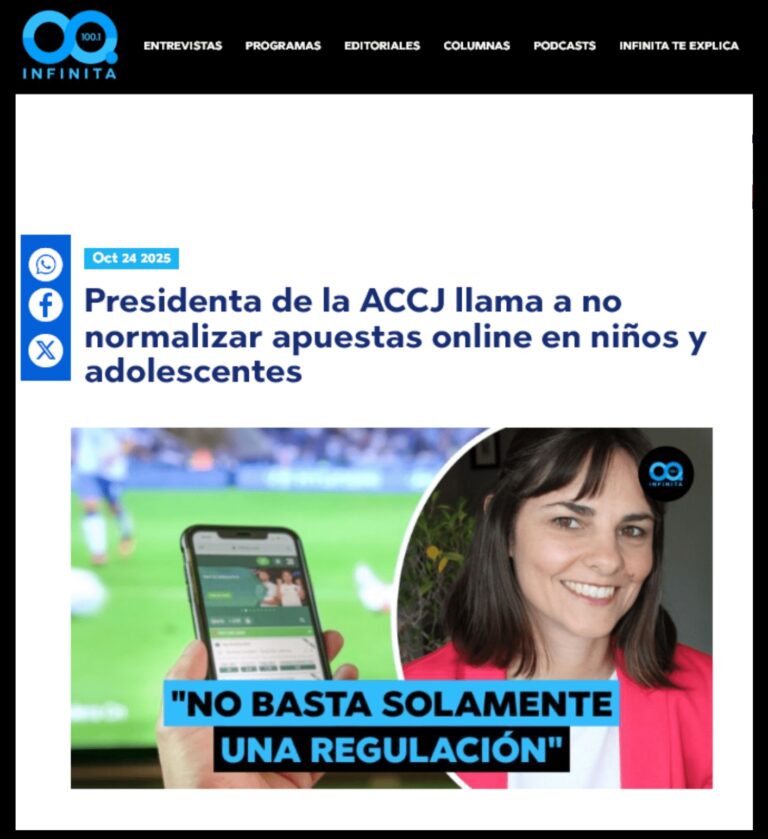 ACCJ advierte en Radio Infinita sobre los riesgos de las apuestas online sin regulación en Chile.